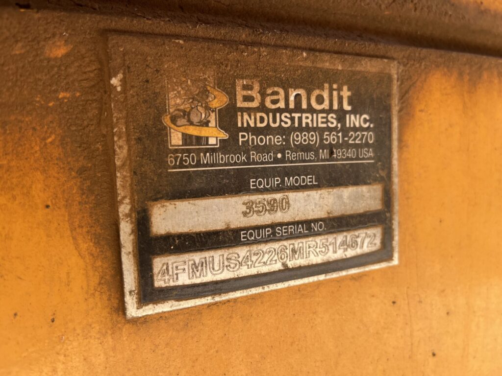 Used 2021 Bandit 3590 Wholetree Chipper S/N 4FMUS4226MR514672 with only 1800 hours. For more information contact Keith Reems @ 678-617-2317 or J’Isaac Reems @ 770-533-2805