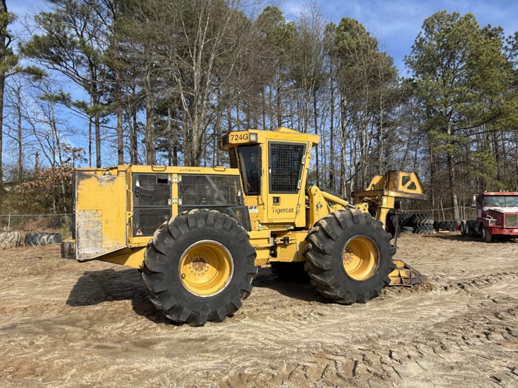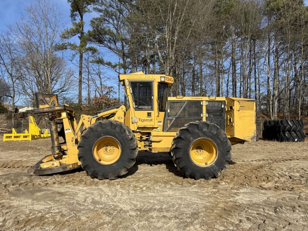 Used 2016 Tigercat 724G Feller Buncher S/N 7244025 Equipped with enclosed cab, joystick controls, heat, air, 30.5 x 32 Tires, and DW5502 Sawhead S/N 552686.