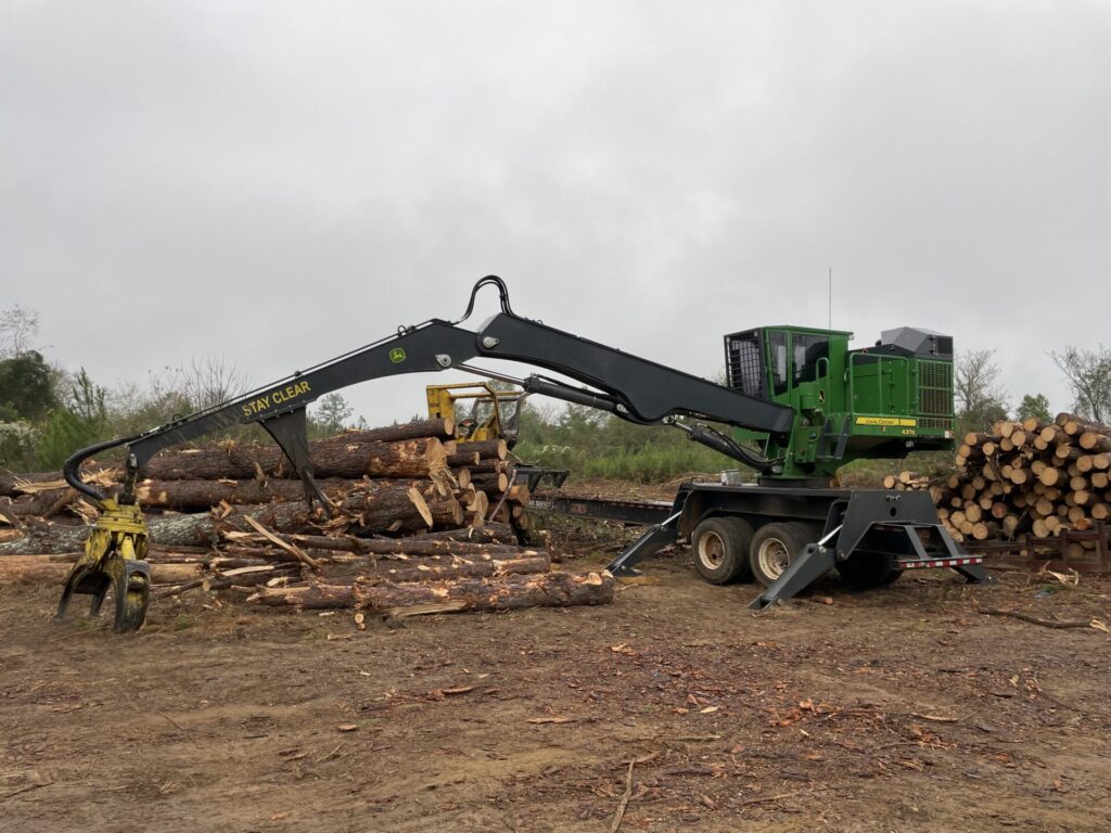 Used 2010 John Deere 437D Knuckleboom Log Loader S/N 1T0437DXHA0189539 with CSI Delimber and CSI Slasher Saw. New Turntable Bearing and Rebuilt Main Pump. For more information contact Keith Reems @ 678-618-2317 or J’Isaac Reems @ 770-533-2805.